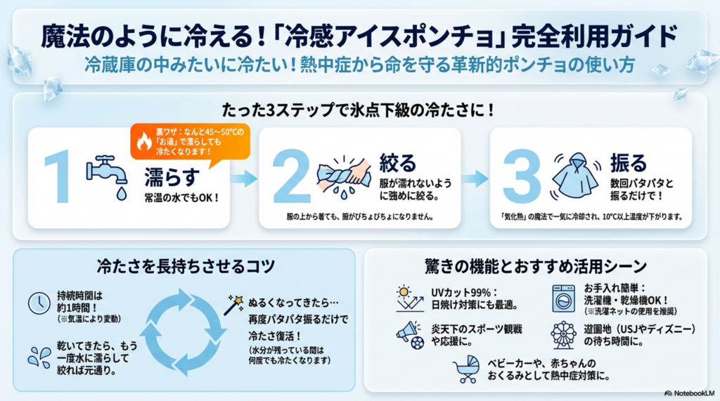 夏のサッカー観戦の持ち物・服装・必需品①は「冷感ポンチョ」です。