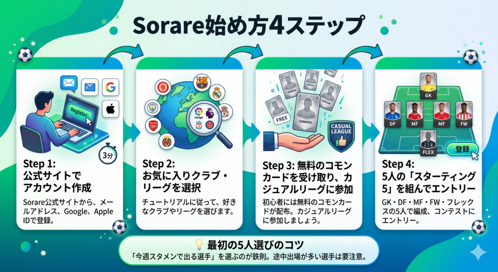 ここからが実践編です。以下の4ステップで、今日からSorareを始められます。
