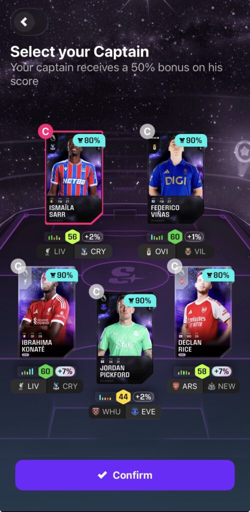 Sorareでは、毎週開催されるコンテスト(リーグ戦)に5人のチームを編成してエントリーします。