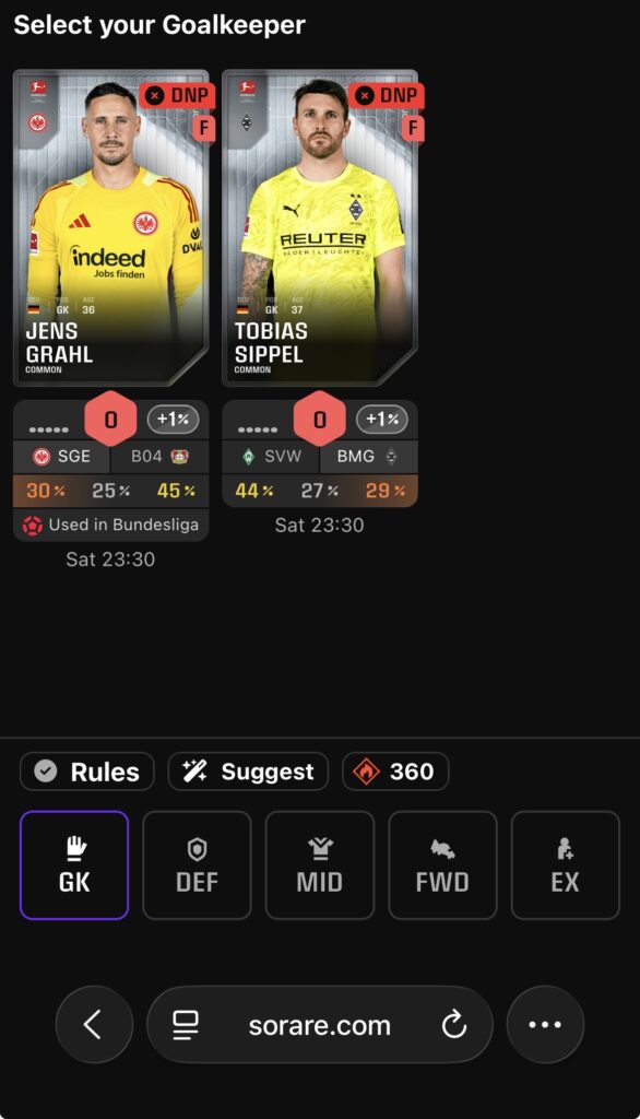 これをSorareではDNP(Did Not Play)と呼びます 。