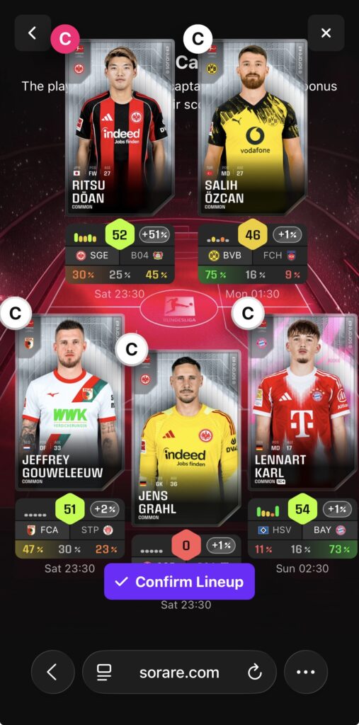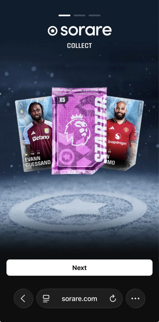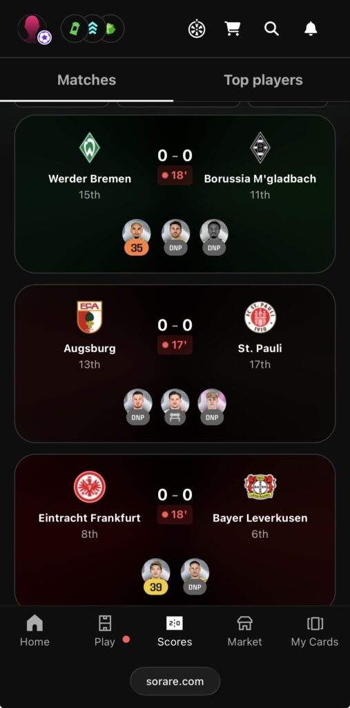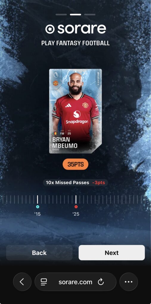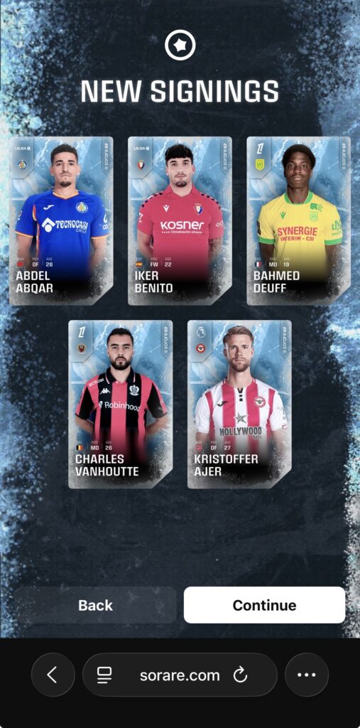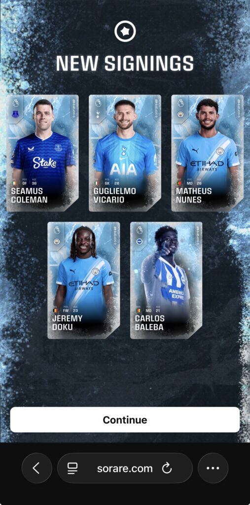 sorareとはサッカー選手のNFTカードを集め、試合で活躍する選手を予想し、そのポイントを競うゲームです。