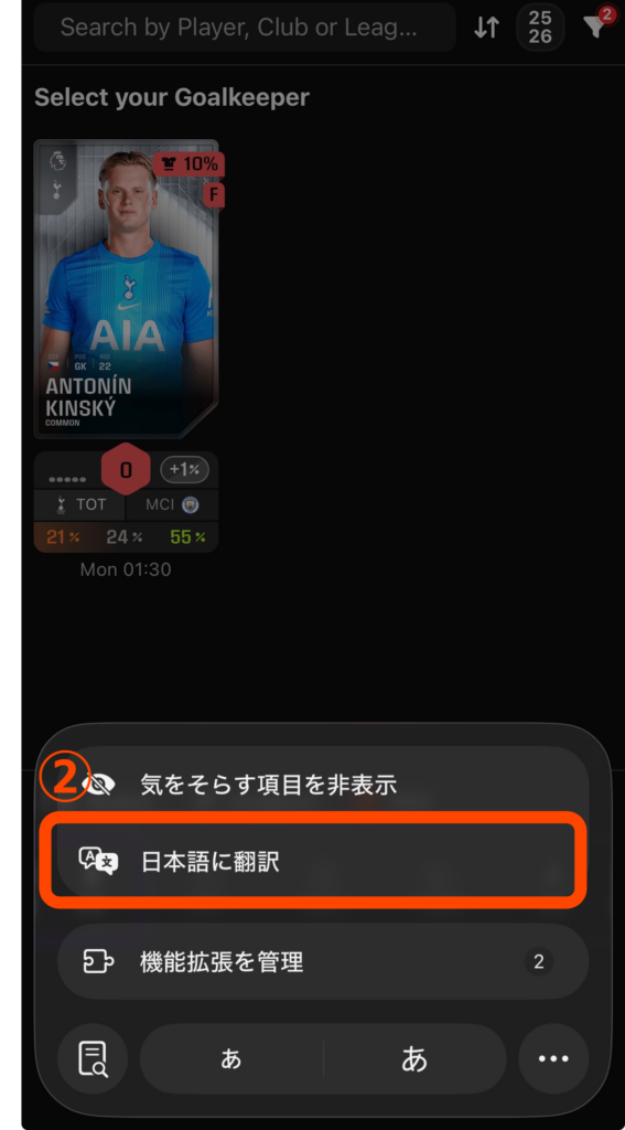 safariなどの翻訳機能を使えば問題ありません。 現在日本語には対応していませんが、ブラウザの翻訳機能を使えば日本語で操作が可能です。基本的な操作(選手を選ぶ、キャプテンを決める)はアイコンで直感的に行えるため、一度慣れてしまえば英語力はほとんど必要ありません。