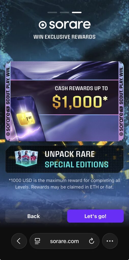 まずは下のボタンをクリックするとsorareの公式サイトに移動します